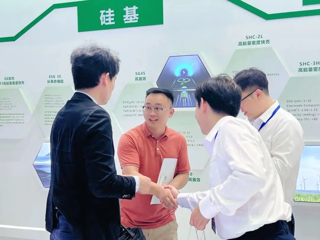 杉杉科技展位占据2号馆C位,现场人潮涌动,交流区域一“座”难留。在为期三天的展会上,杉杉科技研发和技术骨干现场介绍杉杉科技自主研发的石墨、硬炭、硅基负极等重点产品,吸引众多国内外行业专家及客户驻足观看交流、探讨合作。